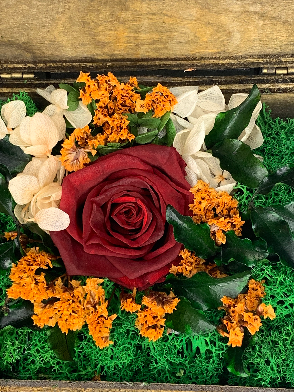 Роза в дървена кутия